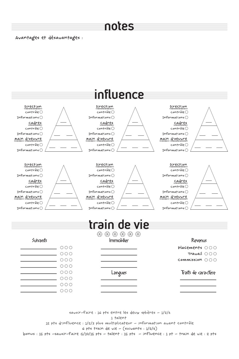 • Un mécanisme de gestion de l’influence complet afin de connaître exactement la manière dont un myste contrôle ses cercles de pouvoir.