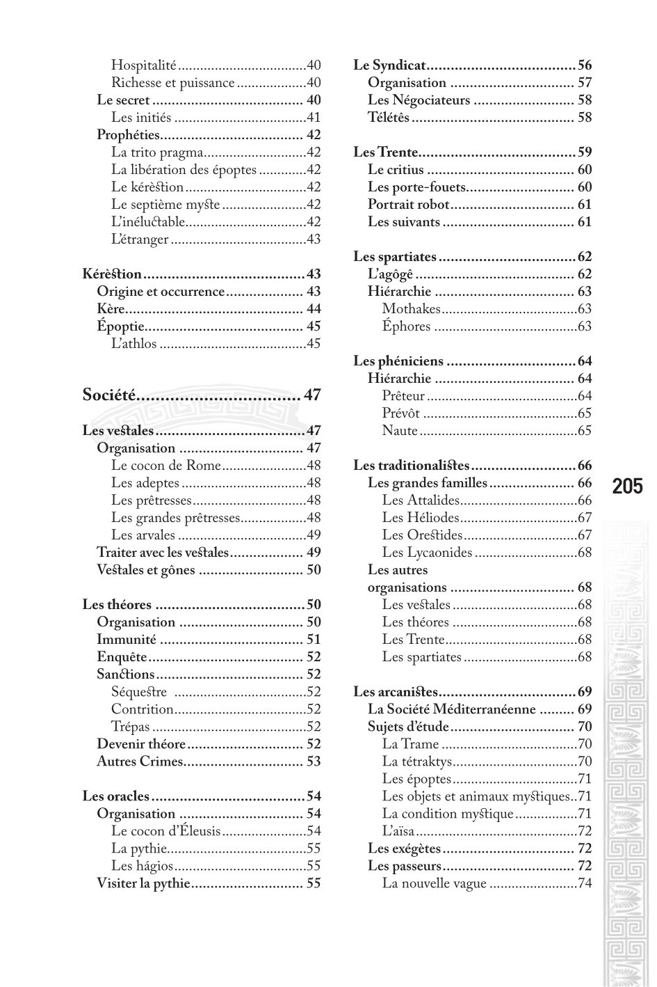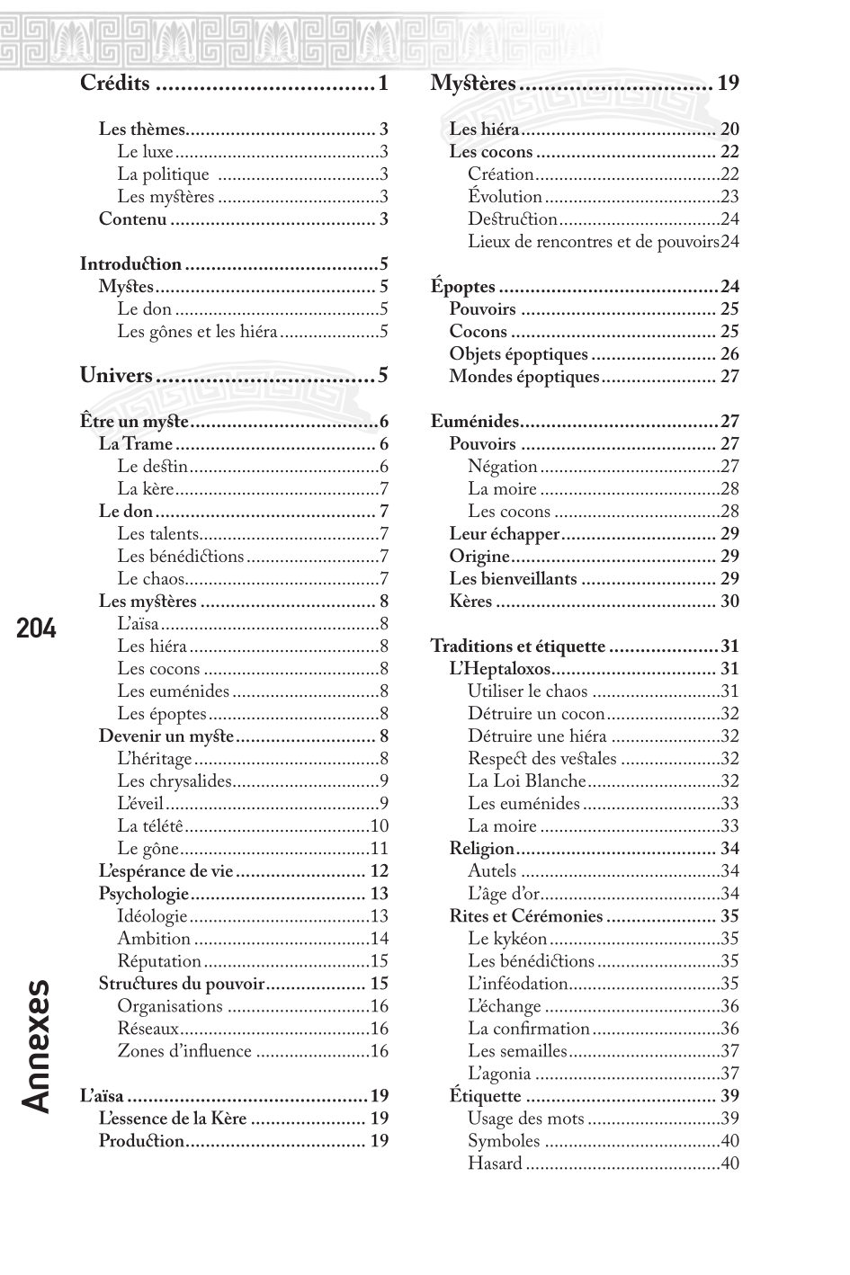 • Une description complète de l’univers des mystes, leurs organisations les plus importantes, l’étiquette, les cérémonies et les traditions mystiques.